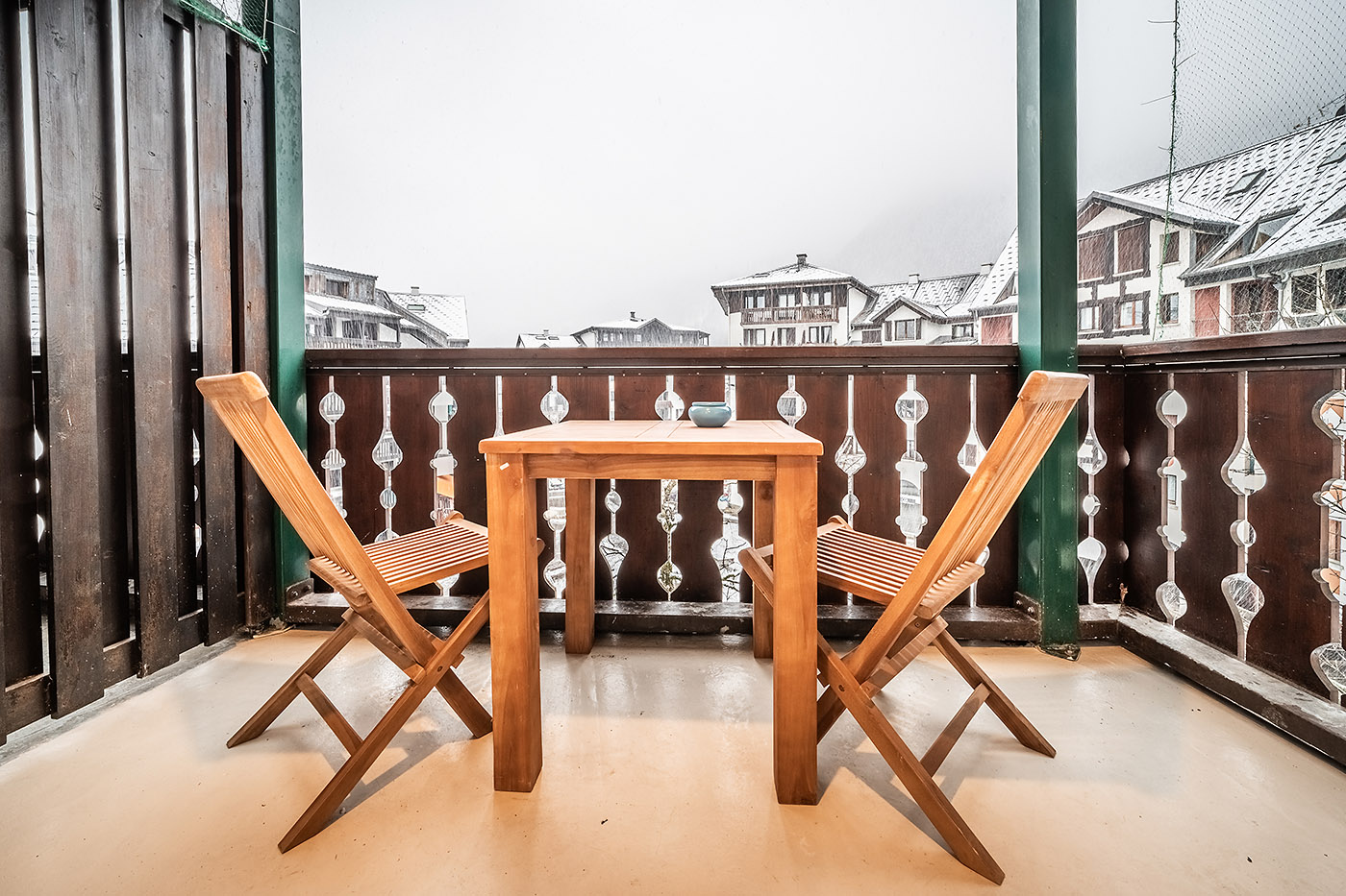 Balcony with views of the surrounding mountains and the South Chamonix square.